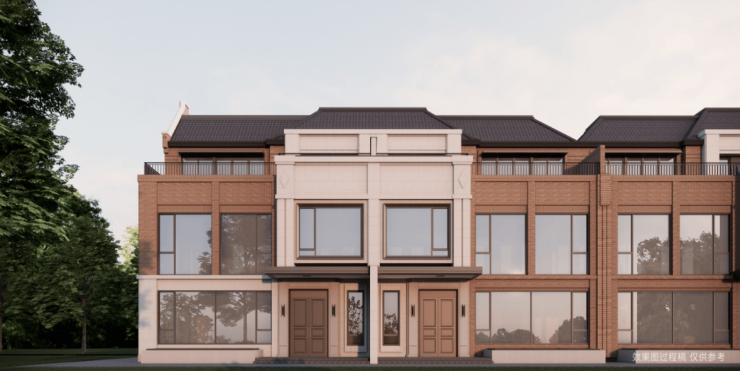 在建筑设计中,领墅汲取嘉佩乐酒店的红砖美学意蕴,将海派建筑经典元素平移,从立面、景观的打造中,以同频风貌大宅的砖墙基因,提取山墙、几何装饰等里弄建筑元素,延续墅居经典三段式立面结构。