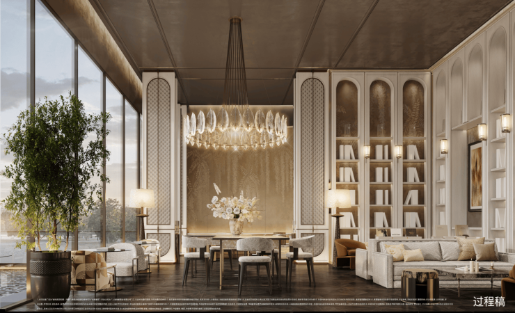 据悉,作为项目的升级迭代的最大亮点,项目约1100m²滨水下沉式会客厅,即将于本月正式亮相。下沉式会客厅未来将集合私宴、健身、休闲、阅读等多重功能于一身,同时,通过绿意隐奢的高定质感、精细化奢材立面景墙等元素的运用,也将为墅居圈层呈现出尊属的私密性与仪式感。