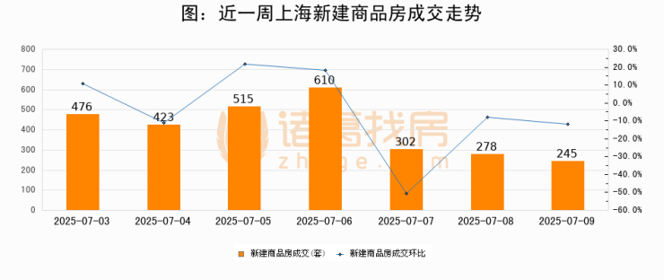 【上海成交日报】07月09日新房成交245套、二手房521套;涨价房源158套
