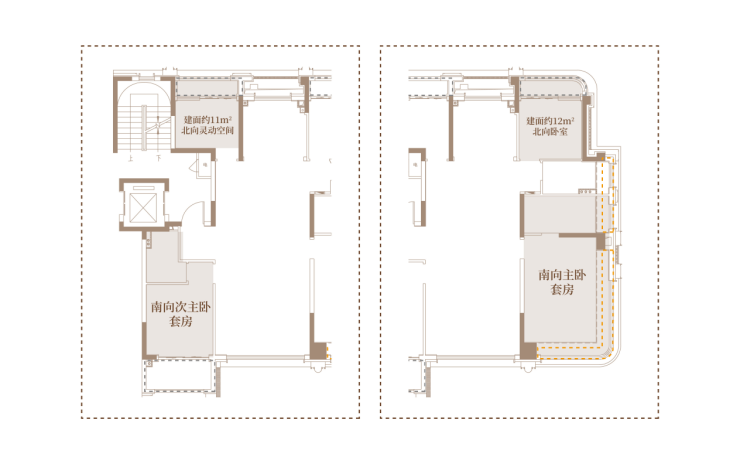 建面约11㎡的北向灵动空间,可以作为书房、茶室、玩具房,甚至改成一整个走入式衣柜,生活的无限想象于此完美实现。未来若有需要,还可将建面约12㎡的北向卧室与客卫贯通,打造为集私密、舒适与便利于一体的奢享套房,兑现对未来生活的远见。