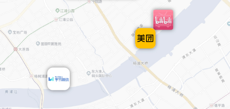目前,杨浦滨江已拥有在线新经济企业近600家。其中字节跳动、美团、B站,三家互联网巨头相继落位于此。