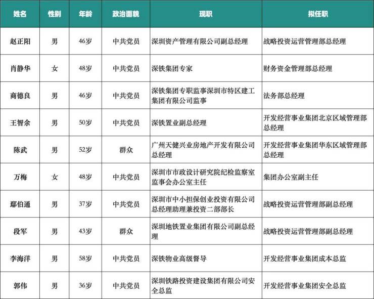 这些将要在万科任职的中高管们基本正值壮年,清一色来自深圳国资系统,且学历、履历闪亮。这批国资队伍精英的到来,意味着万科正在从内而外进行“国资化”重构。