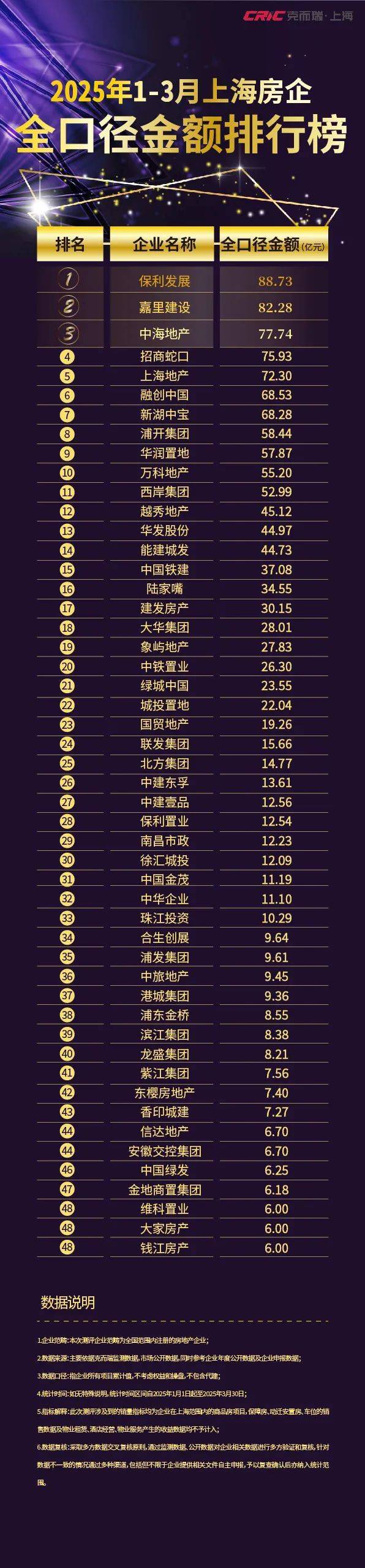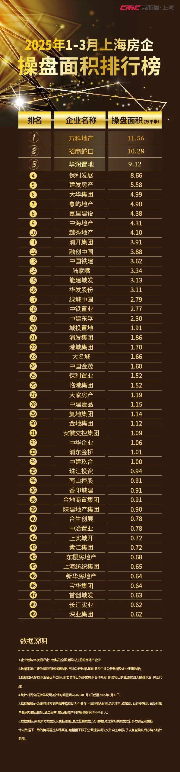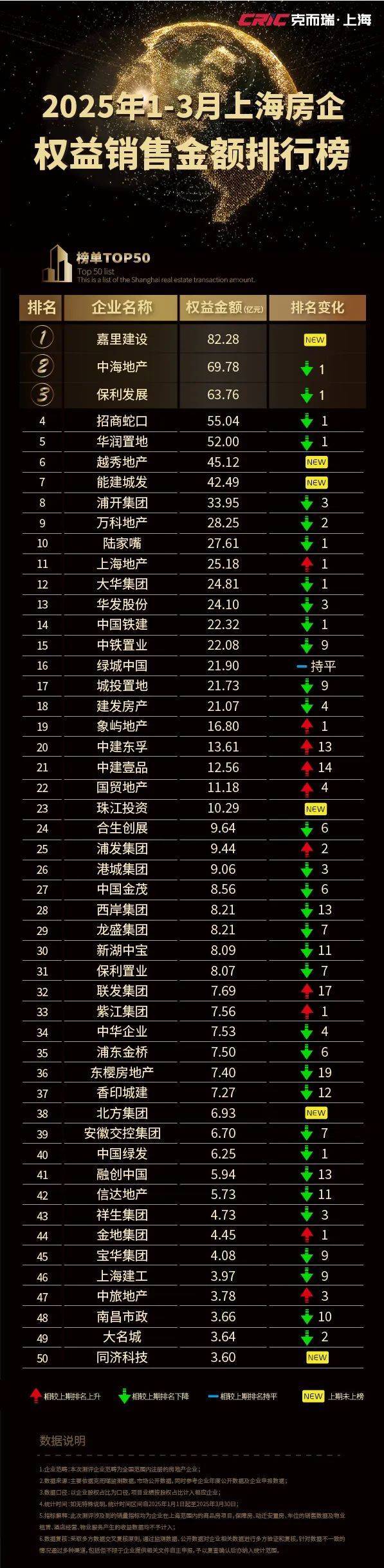 克而瑞 | 2025年1-3月上海房企销售排行TOP50