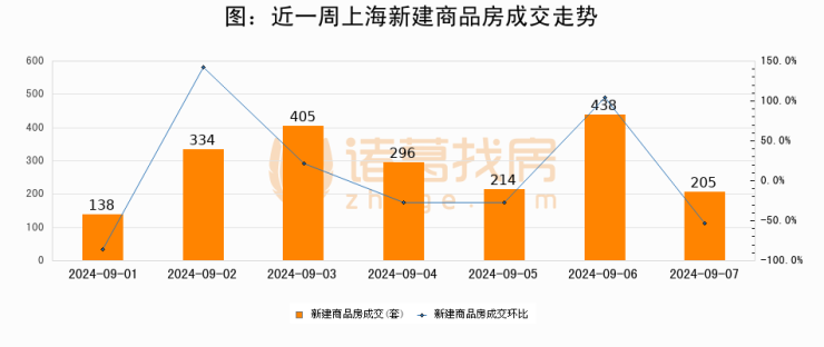 【上海成交日报】09月07日新房成交205套;涨价房源94套