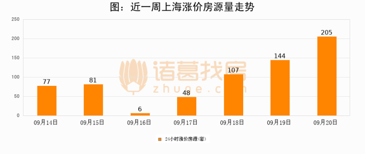 根据诸葛找房数据显示,上海24小时涨价房源量为205套,较09月19日增加61套,环比上涨42.4%。与此同时,涨价房源占比小幅扩大,业主信心有所提升。