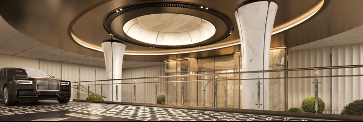 奉贤首座中央车站,对标奢华酒店落客区,亿级改善高端配置;酒店式单元入户门庭,奢石搭配铝板,空间气场全开。