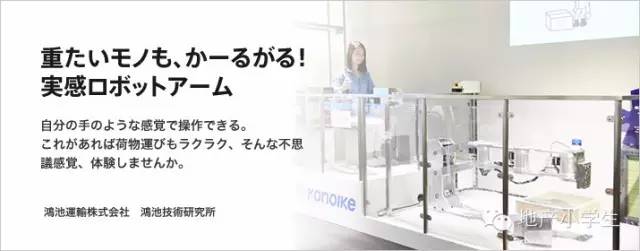 鸿池运输的展位操作机器人手臂,感受轻而易举的搬动重物;在大阪Vislab,你握住伞柄就能感受各种东西(包括雨滴、冰雹、甚至蛇)掉落在雨伞上面的感觉。