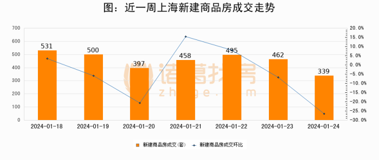 【上海成交日报】01月24日新房成交339套;涨价房源132套