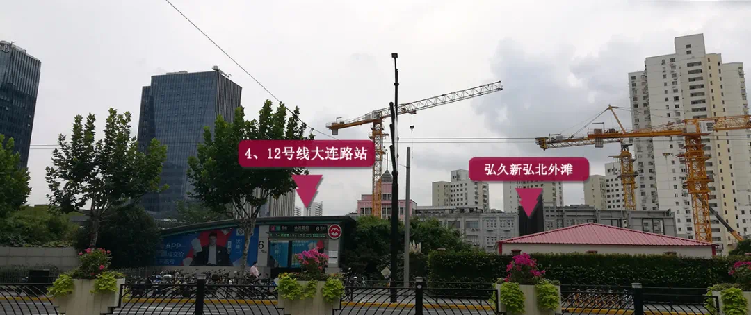 弘久新弘北外滩是4、12号线大连路站地铁上盖建筑,其中6号口通道将连通其地下商业层(已预留接口)。
