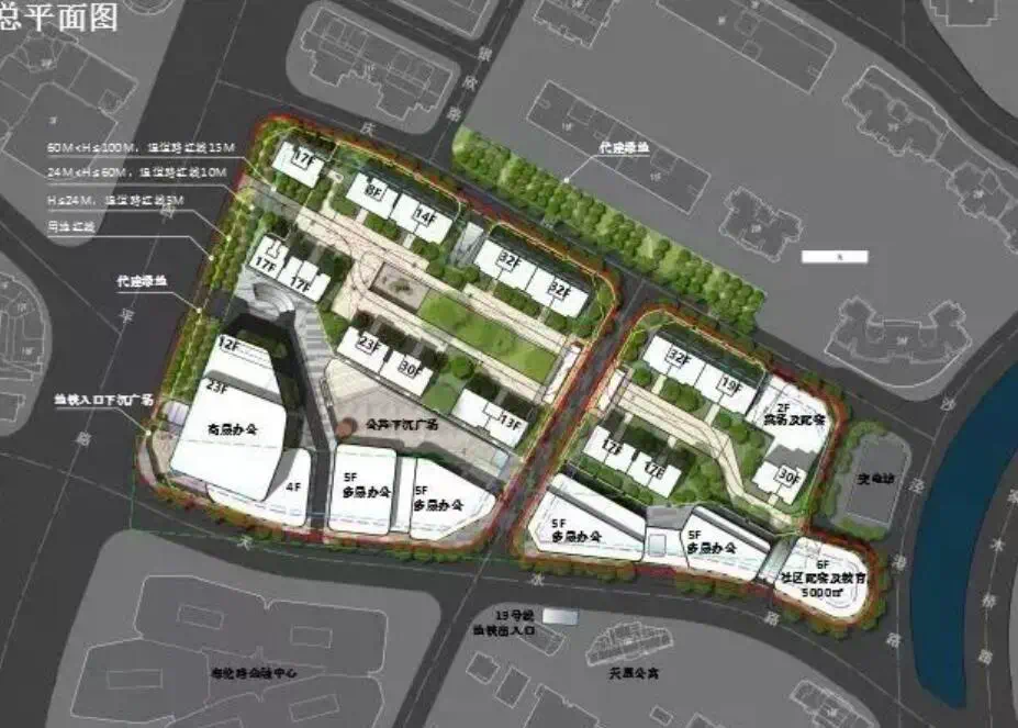 祥生蝶恋花项目共分为两个地块,用地功能为三类住宅+商业+商办,容积率均为4.5,其中三类住宅≤60%,商业+商办≥40%,建筑限高100米,其中住宅部分是由10幢13-32层的高层组成。