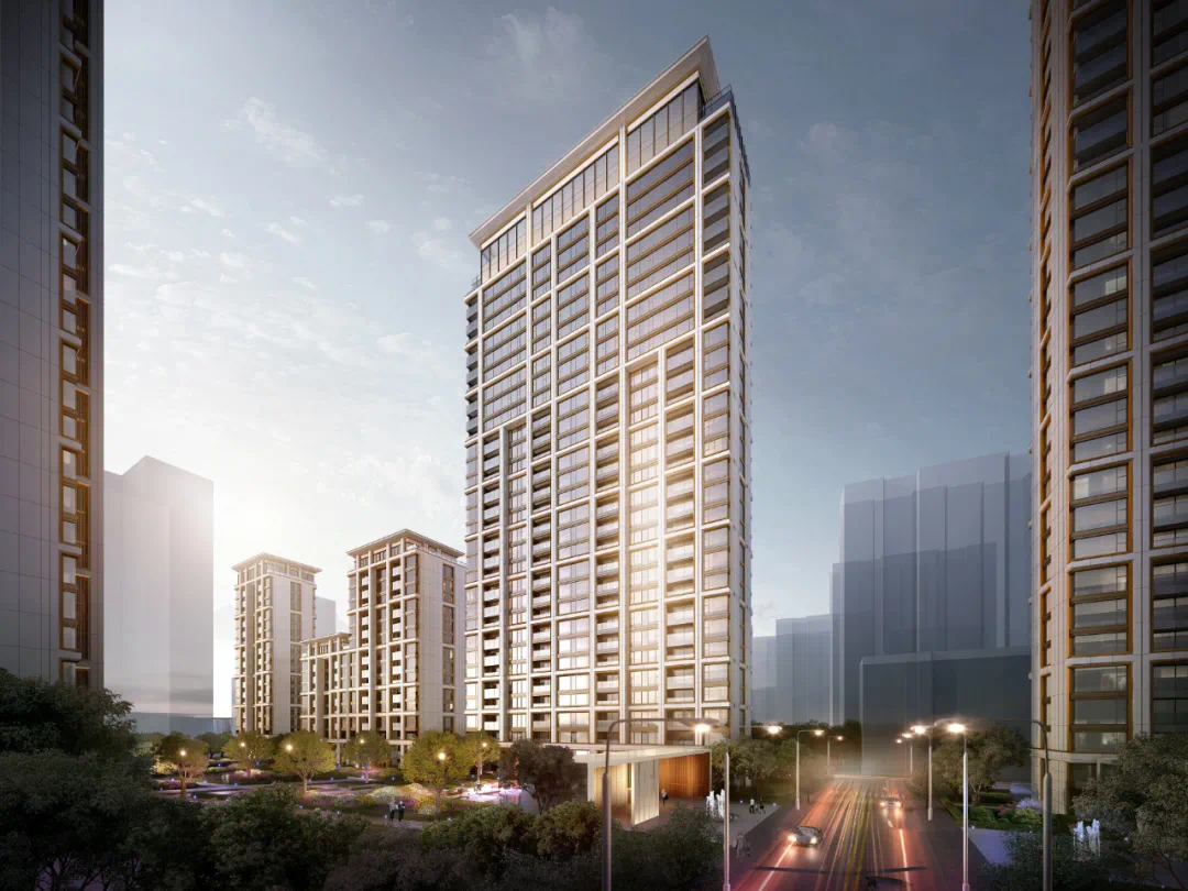 祥生蝶恋花项目住宅部分设计强调形体的组合、穿插,整体形态端庄大气。