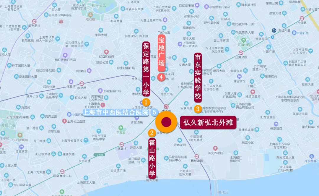 教育配套方面:项目周边1公里内拥有虹口区保定路排名前列小学、霍山路小学、上海市市东实验学校等。