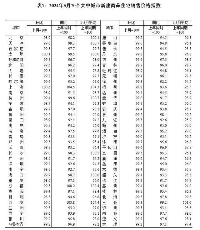 国家统计局城市司首席统计师王中华解读称,5月份,70个大中城市中,各线城市商品住宅销售价格环比下降、同比降幅略有扩大: