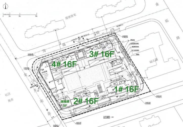 根据公示,该地块拟建4栋16F商品住宅、1栋8F保障房及1栋2F社区配套用房。项目非人车分流,内部规划有儿童活动场地,2梯4户带连廊。