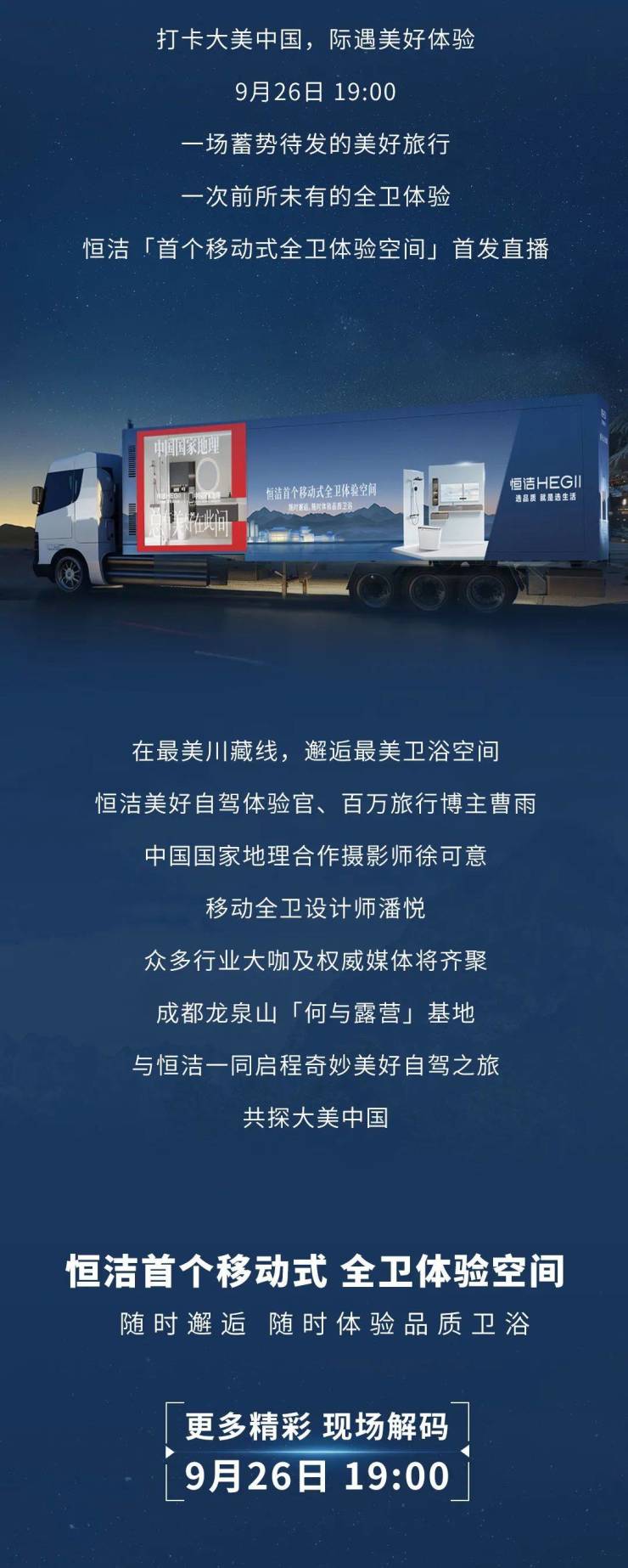 穿梭大美山河!恒洁首个移动式全卫体验空间即将揭幕
