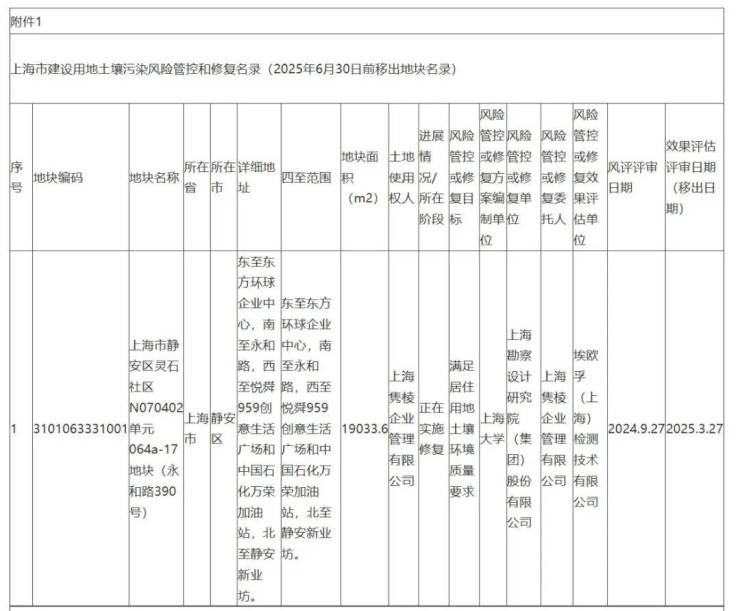 最新消息!上海“毒地”名录更新,静安灵石社区地块被移除。