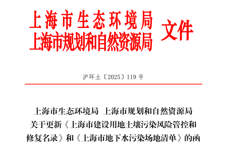 上海市规划和自然资源局发布,更新了《上海市建设用地土壤污染风险管控和修复名录》和《上海市地下水污染场地清单》。