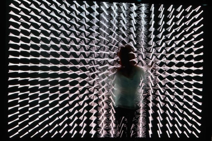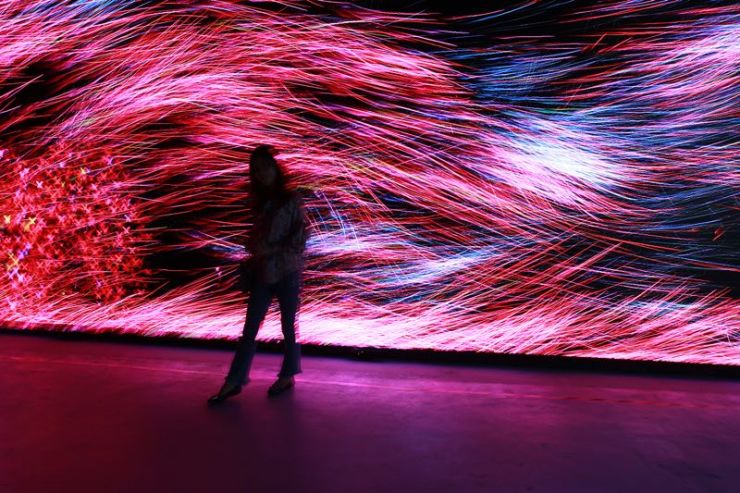 首次进入上海的国际新媒体艺术团队teamLab、3Drops Studio及Quayola、Danel Iregui等数位国际先进新媒体艺术家专门为此次的“光影秘境”特展带了8件全新的艺术作品,除了首次在中国展出的teamLab作品《Flowers and People-Dark花和人-黑暗》它通过捕捉观展者的动作,实时了描绘花朵从诞生到死亡;还有以巴黎圣母院和圣厄斯塔什大教堂哥特式风格窗户为灵感,展现巴洛克和文艺复兴时期光线、形式、形状、颜色的动态解构的《Strata纹理》;通过实时处理纽约的风力和温度等数据,渲染出粒子的轨迹和色彩,只需参观者的简单挥手便有可能掀起纽约一场风暴的《Butterfly Effect蝴蝶效应》;由真实的时间流驱动并指向目标形状的互动装置《Fluid Structure流体结构》;讨论声音与影像,影像与空间实质关系的《Infinite无垠》;通过光线的疏密变化,展现美好梦境的《Iridescence霓》;由灯光指引参观者从喧闹都市到隐秘丛林的《Grid阵》;探讨“行为是如何被塑造以及控制到底是个什么样的概念”的互动LED雕塑作品《控制与非控制Control No Control》。艺术家们借着影像声效的吸引,搭着时间的桥梁,用艺术作品把观展者的参与和互动带入进当代艺术的语境。展览一直延续至2018年3月22日。
