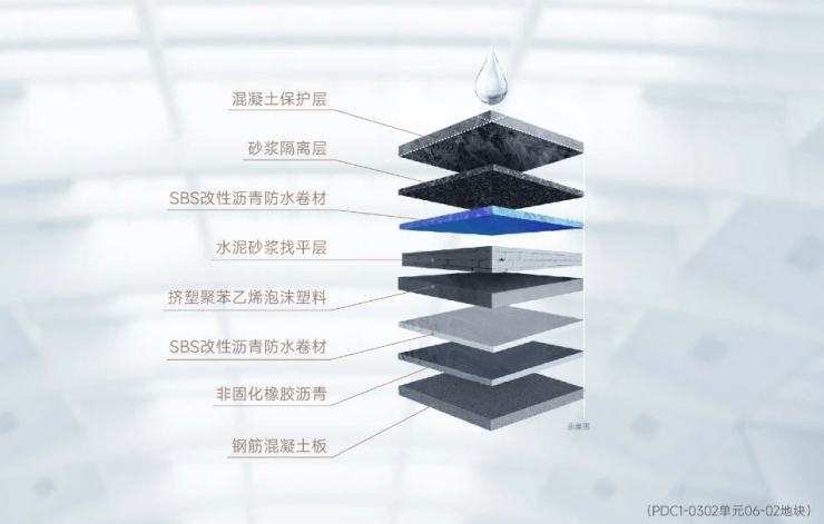 外墙方面,采用高性能保温隔热材料——硅墨硒保温板,提升建筑的热工性能;外窗方面,选用LOW-E三玻两腔外窗,气密性高达8级,隔热、隔音、保温性能优异;屋顶方面,采用8层屋顶构造工艺,并选用加厚保温材料,减少室内外温度传导,从而降低建筑能耗、减少空调耗能。