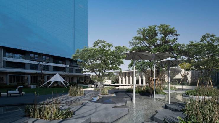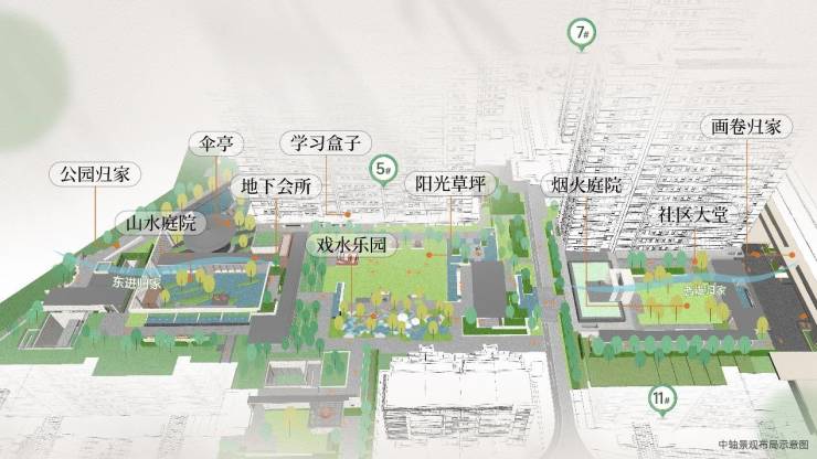 在四季隐秀的整体规划中,中轴景观是空间结构的关键连接线。