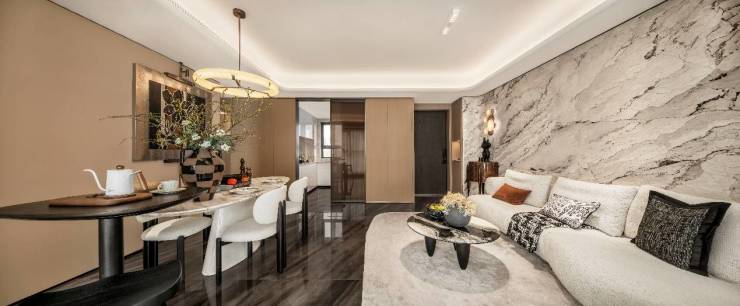 四季隐秀把公区重点放在奢华感的营造上,对内塑造从容舒适的空间氛围。在每个户型上下功夫,致力于满足一个家庭换房周期。