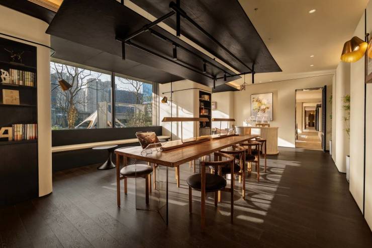 楼下则打造了「高浓度超级中轴」,将社区十大高浓度节点集中串联。约1600㎡下沉式阳光会所打造了私宴厅、茶室等高端社交空间,也有健身房、乒乓球室、桌球室等运动休闲区域,为日常生活增添更多可能性。