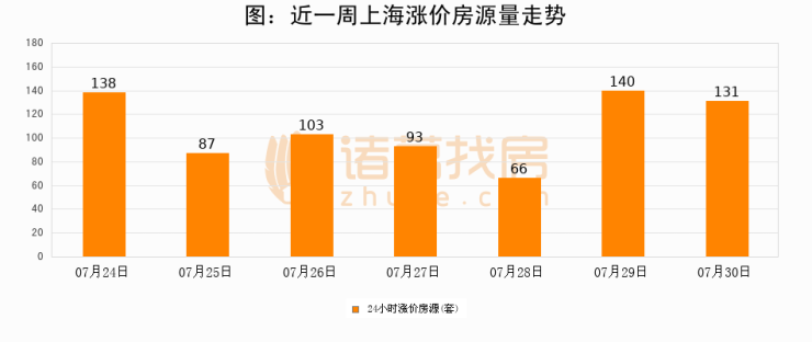 根据诸葛找房数据显示,上海24小时涨价房源量为131套,较07月29日减少9套,环比下降6.4%。与此同时,涨价房源占比小幅回落,对于购房者来说是一个入市窗口期,购房者可抓住时机入市。
