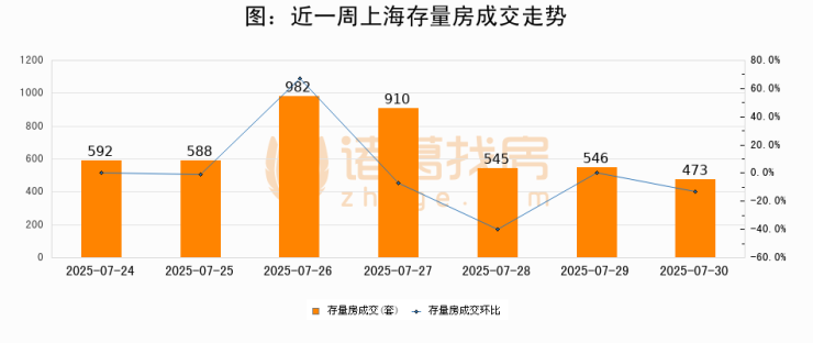 从存量房来看,2025年07月30日上海存量房单日成交473套,比昨日减少73套,环比下降13.4%。从近一周存量房成交来看,上海存量房日均成交套数为662套,07月30日单日成交473套,低于近一周平均水平28.5%。
