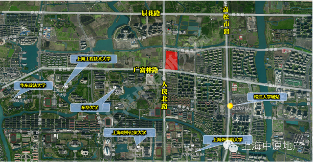 地块距离轨道交通9号线松江大学城站1.5公里,距离最近的高速入口G60沪昆高速松江新城出入口5.5公里,距离G1501上海绕城高速天马山出入口10.9公里。