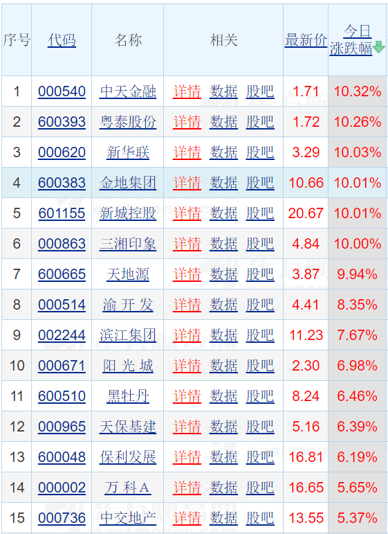 截至午间收盘,渝开发、中天服务、新华联、金地集团、新城控股和三湘印象涨停,阳光城、滨江集团、绿地控股、万科A等股票涨幅在5%以上。