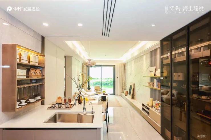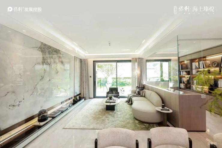 保利·海上瑧悦为央企保利悦字系新品,打造宽达35米、高约6米的奢阔东方门堂,建筑外立面采用大面积玻璃窗幕,简洁大方。