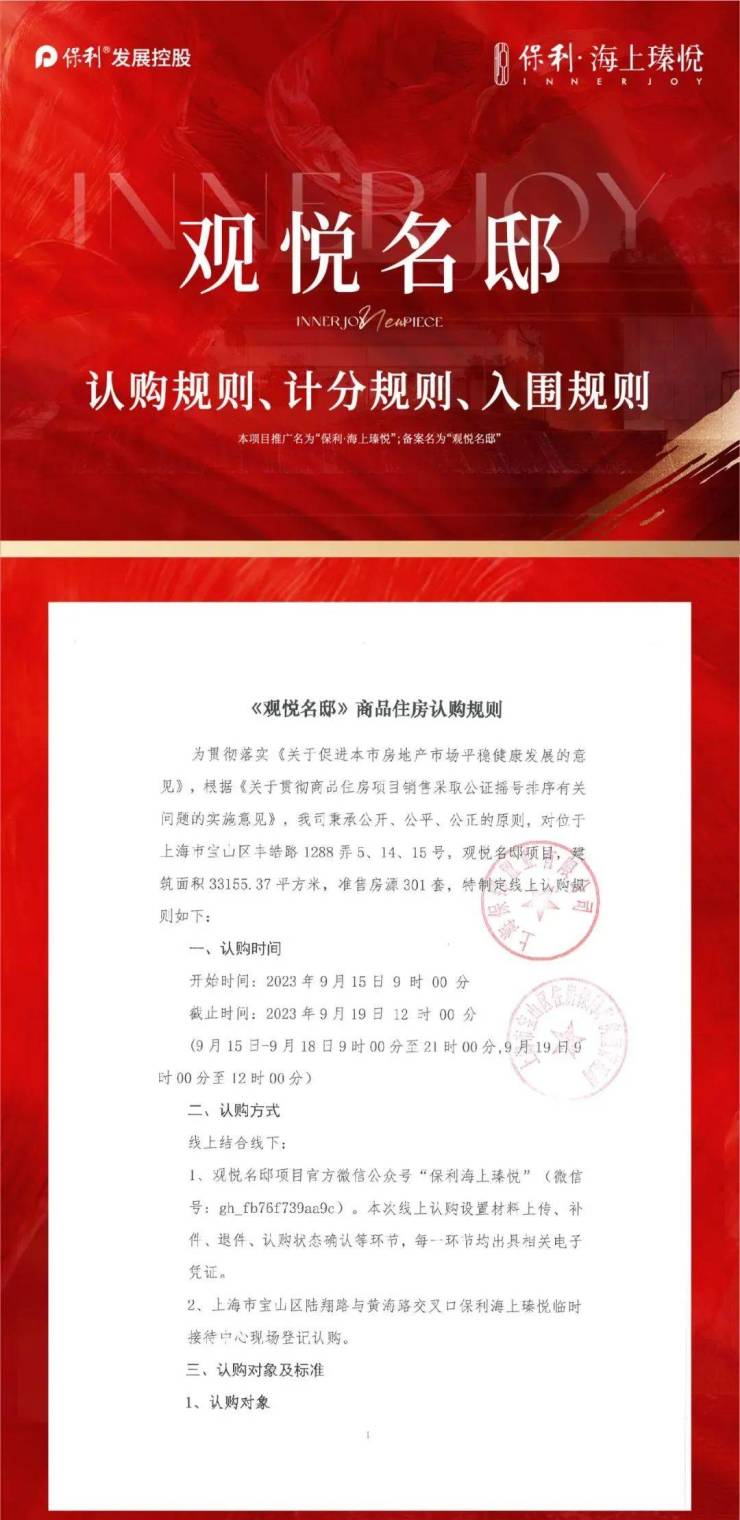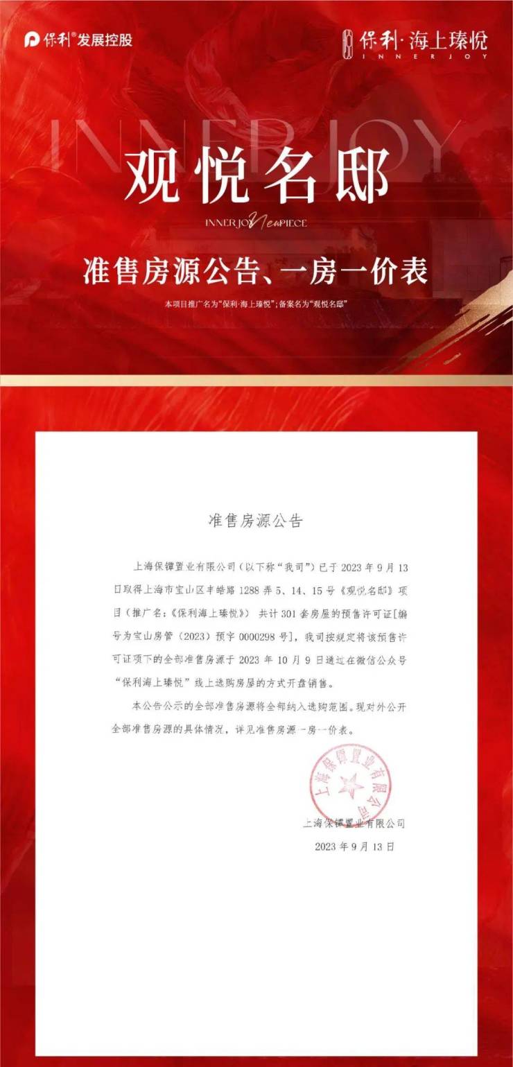 9月15日,宝山南大智慧城纯新盘保利·海上瑧悦开启认购。项目与地铁15号线丰翔路站直线距离约600米,首开301套约99-128㎡精装3-4房,均价63000元/㎡,最低总价5436812元(4幢5号305)。
