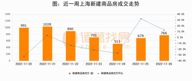【上海成交日报】11月26日新房成交766套;涨价房源148套