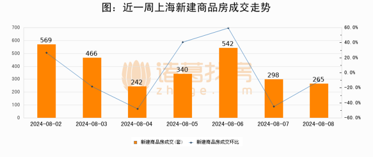 【上海成交日报】08月08日新房成交265套;涨价房源170套