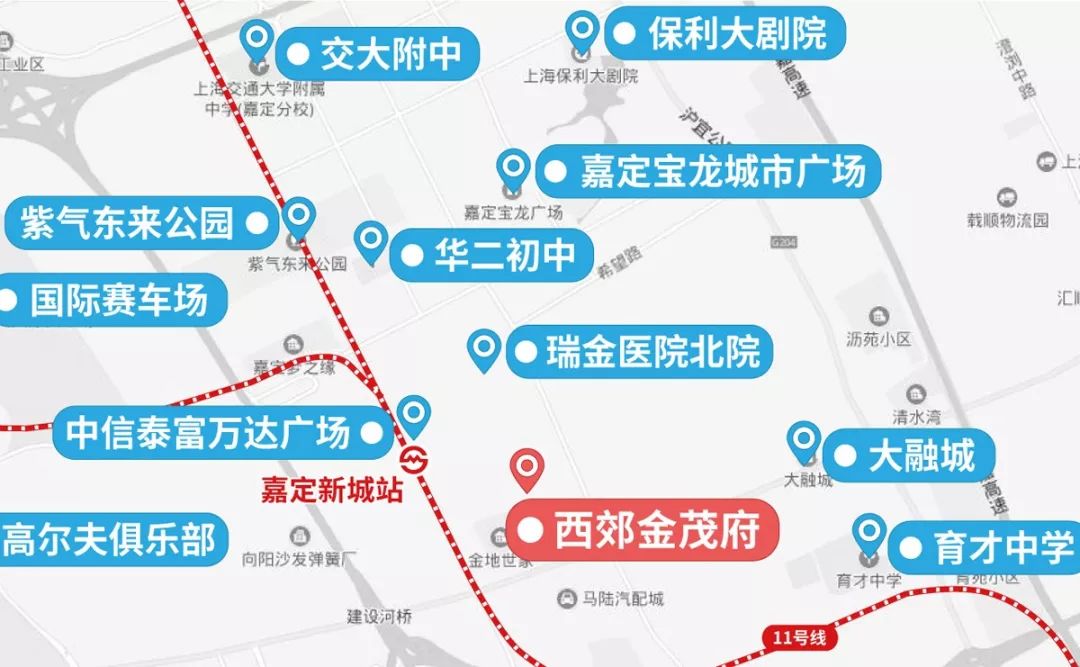 西郊金茂府所处嘉定新城,作为上海2040规划中的5个新城中心之一,这几年的发展是有目共睹,大融城、宝龙城市广场、保利台北风情街、保利凯悦酒店、麦德龙、西云楼、东云街等时尚等一大批高端商业进驻,华二初中(上海四大名校华师大二附中分校之一)、交大附中及育才中学3所市重点中学的引进,三级甲等上海瑞金医院北院也已运营多年。