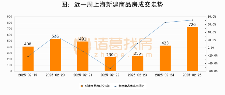 【上海成交日报】02月25日新房成交726套、二手房788套;涨价房源4092套