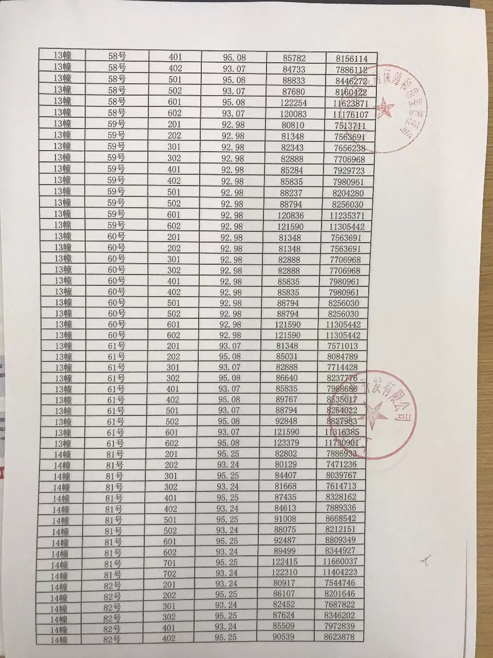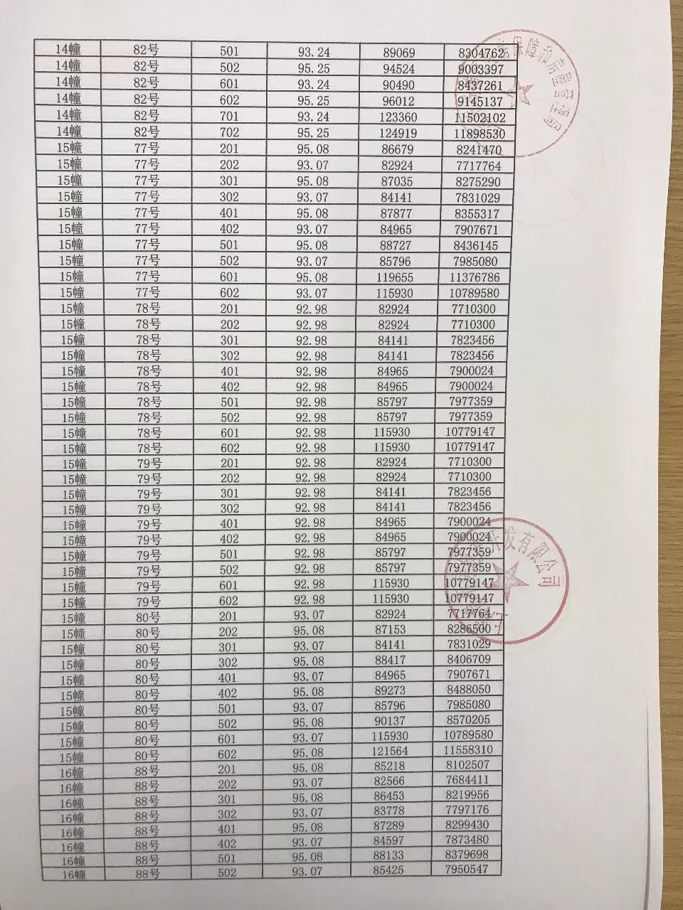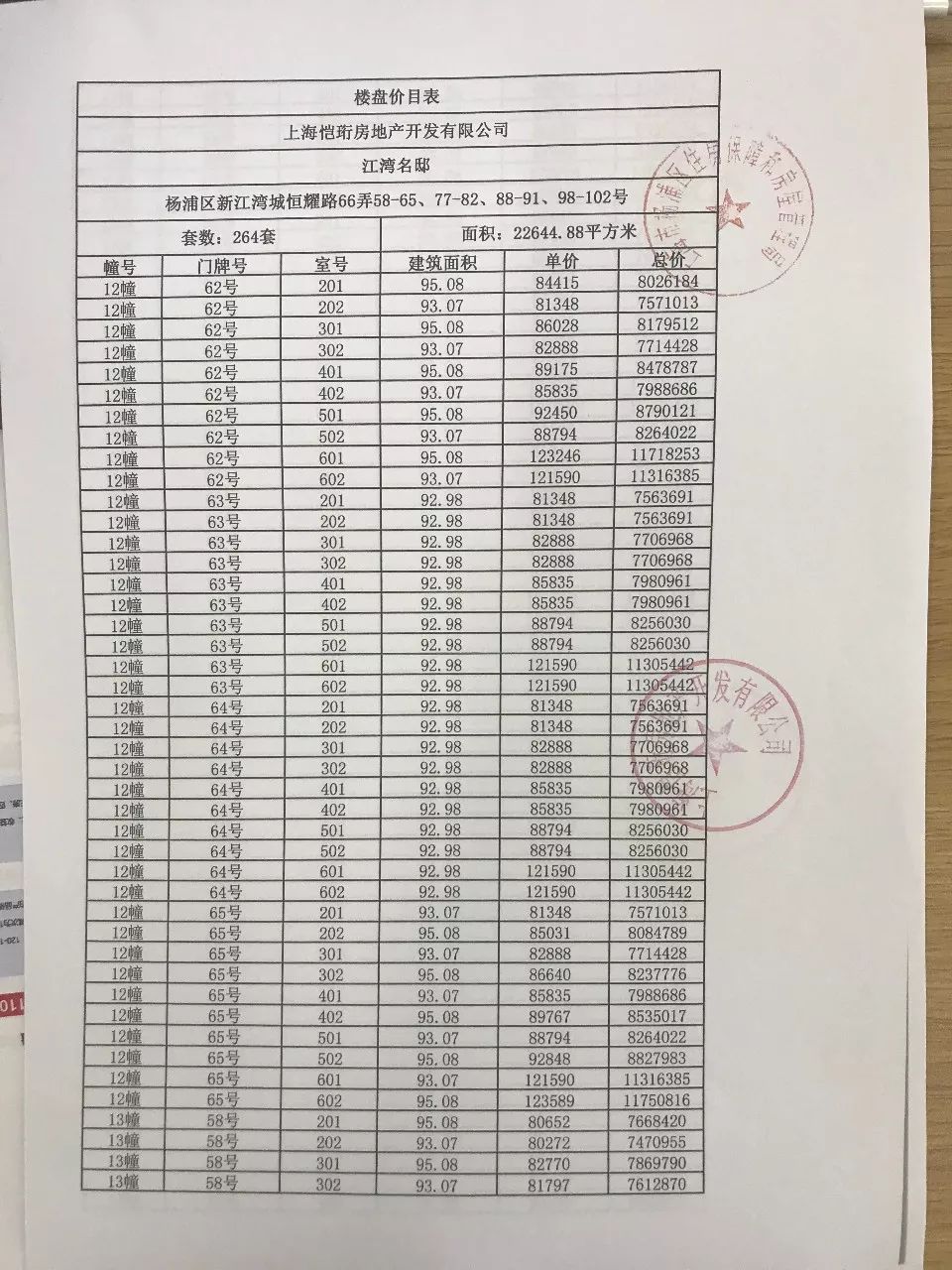 附项目完整一房一价表: