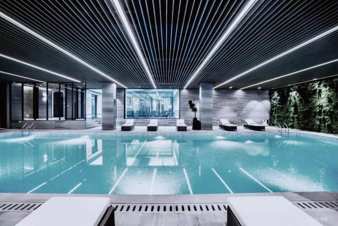 项目内部则配有一座约1800㎡+文化主题+地面全石材铺设的会所,涵盖社交、健身、休闲、艺术等多种模式,比如多功能会客厅、恒温恒湿泳池等;