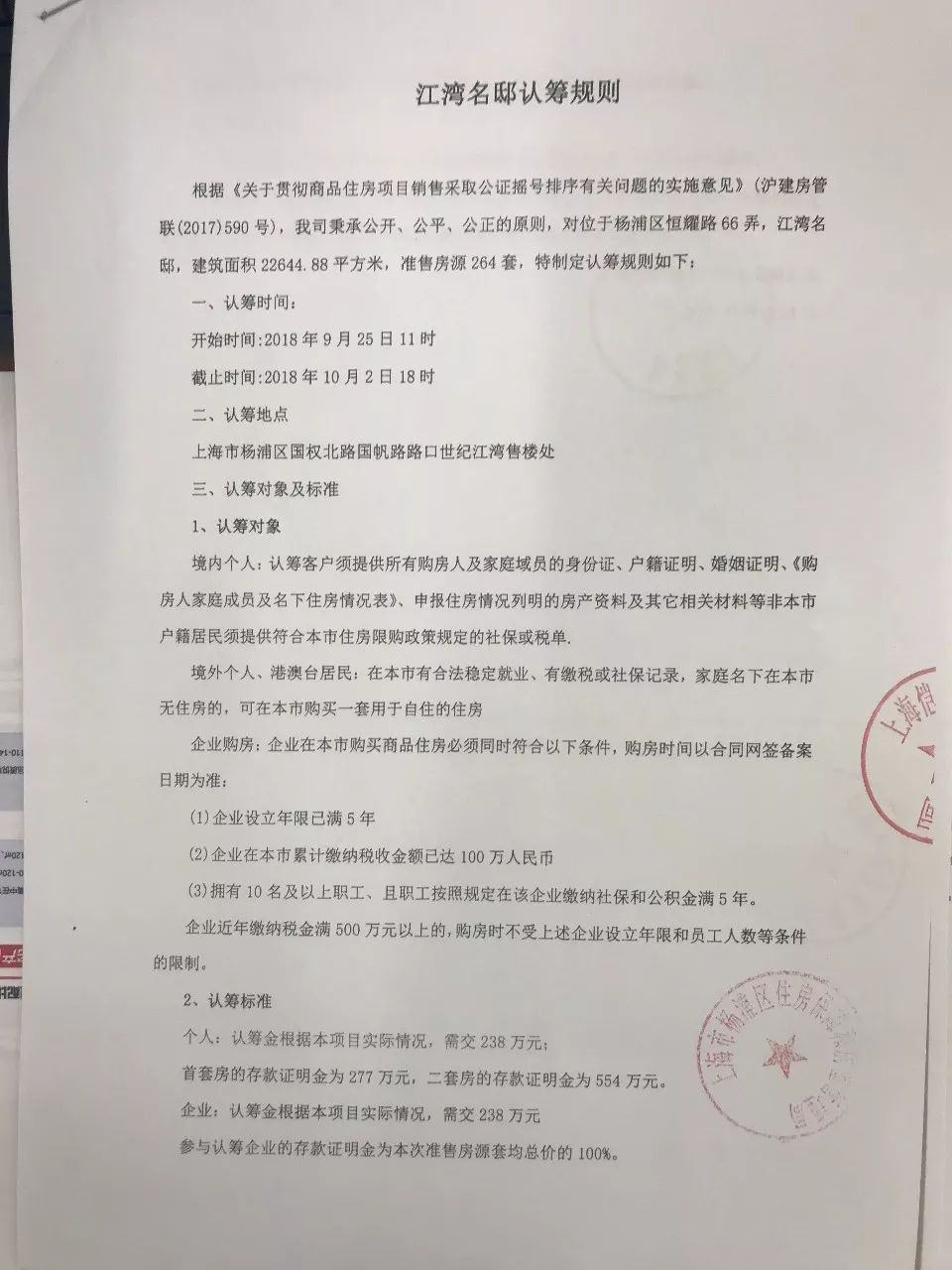 资金证明:个人首套277万元,二套554万元;企业套均价的100%