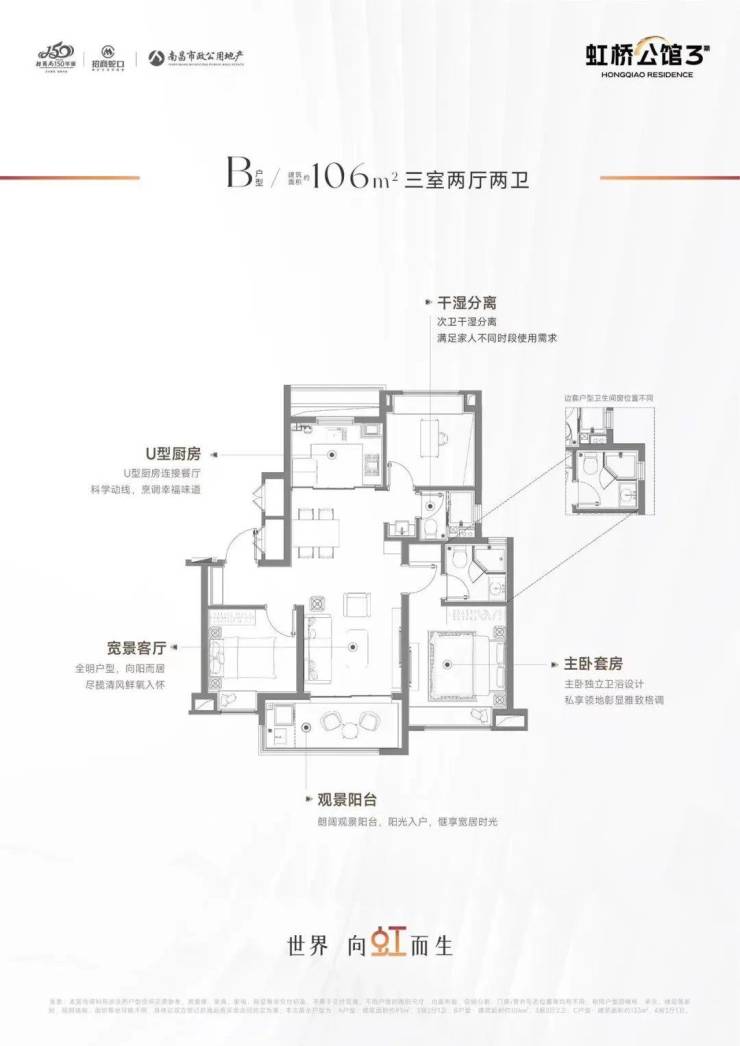 【虹桥公馆3期】272套93㎡-106㎡3房即将认购,均价6.4万/㎡