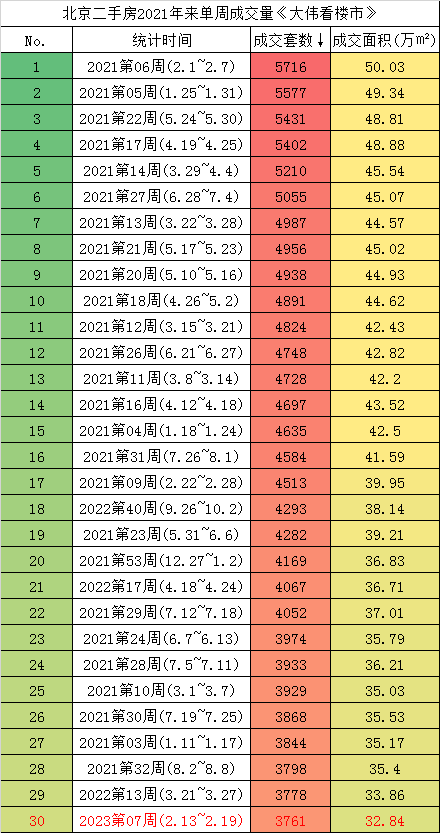 这一数据略高于2022年12月成交量,但也只是与2022年1-2月份相当,单周数据从2021年以来排在第30位。