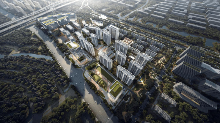 港城中环汇云启结合自然河道景观与全龄社区互动场景的六维社区营造。