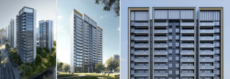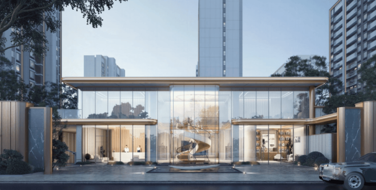 社区是现代都会风格,镜面建筑、高窗墙比、香槟金铝板线条提升质感,全新国际人居生活。