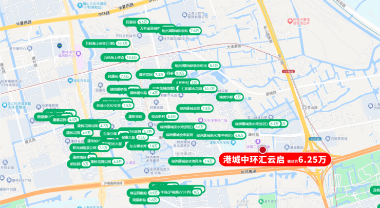 据了解,港城中环汇云启的价格可能会在6.5万/㎡,我们不妨来看下区域次新房的挂牌价。