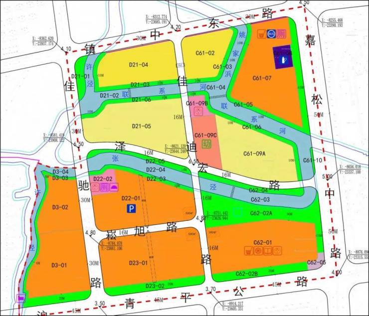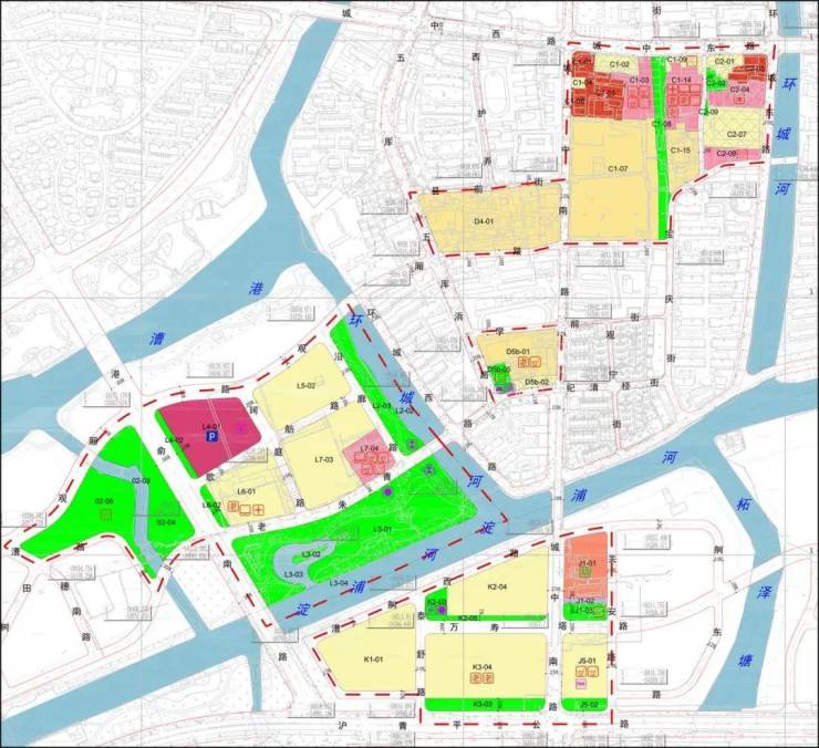 同时,规划对部分指标进行了优化:南门片区滨水住宅(如K2-04地块)容积率从1.5降至1.2/1.25,建筑高度从24米降至15米;沪青平公路沿线住宅容积率提高至1.7。老城厢片区住宅地块容积率则由1.0统一微调至1.05。
