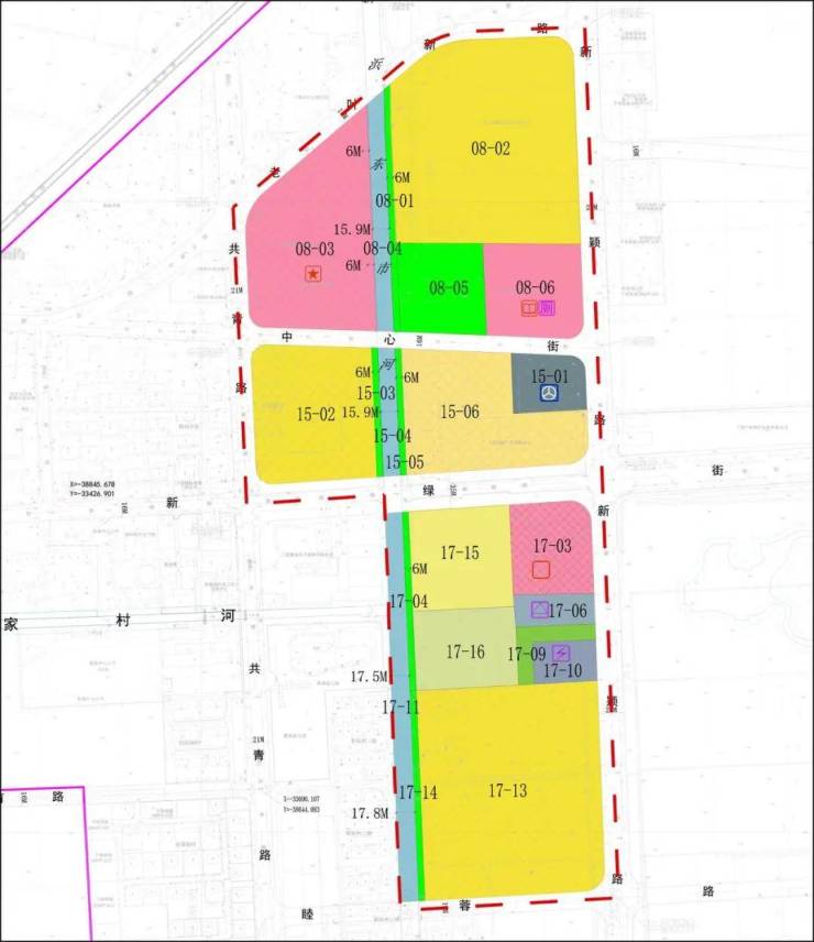 17-05地块:拆分为17-15地块(保持容积率1.5,限高24米)和17-16地块(调整为城市发展备建用地)。
