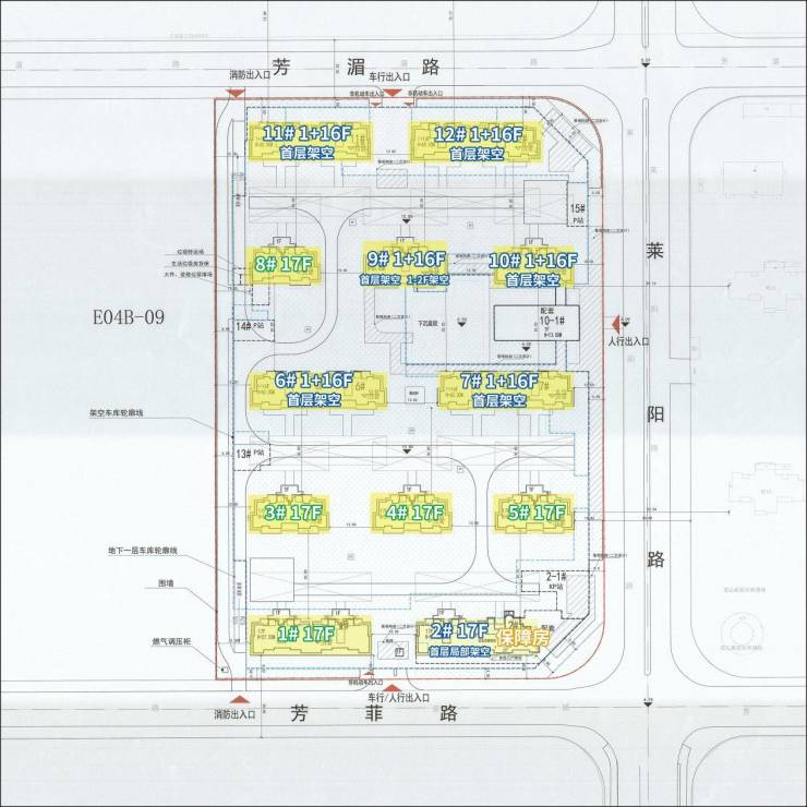方案显示,项目整体规划12幢16-17层住宅,栋距约30米,小区内部设计有下沉庭院,有多栋住宅首层全部架空,少量单元为1-2层架空或者局部架空。保障房放在最南侧2#东单元,且首层三户架空。