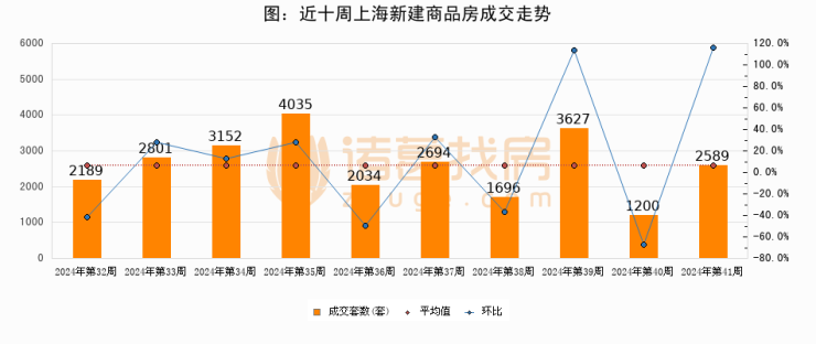 【上海成交周报】第41周新房成交2589套,二手房6412套,涨价房源1583套