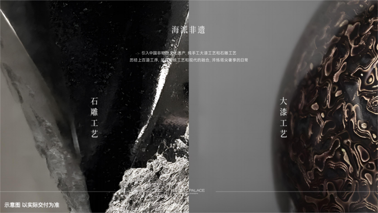 在用料上,龙湖选取“青云梦幻、秀丽山河、雪山飞狐、西班牙白沙”等四种奢石,引入中国非物质文化遗产,采用纯手工大漆工艺和石雕工艺,历经上百道工序,呈现非同一般的质感体验。