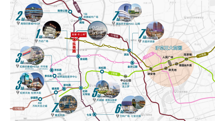 项目至江桥维乐城直线距离仅约500米,乘坐嘉闵线(在建)1站江桥万达广场,2站印象城MAGA,3站直达虹桥天地&虹桥天街等大型商业,吃、喝、玩、乐一站式享受。